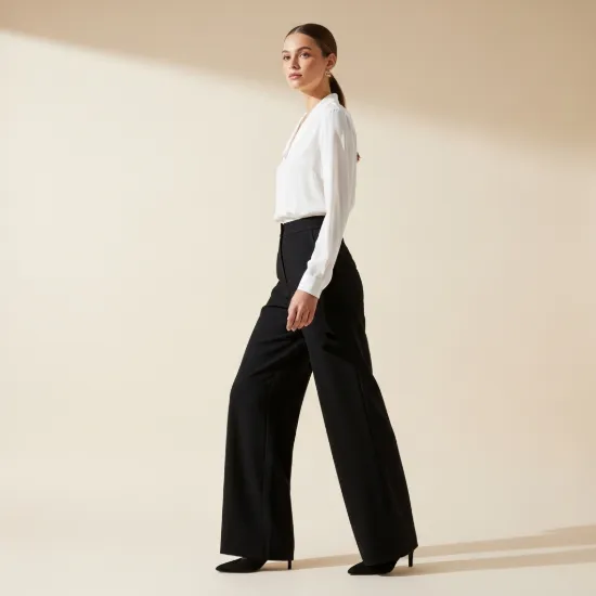 Çabasız şıklığın anahtarı: Mia Palazzo Pantolon. Yüksek bel kesimi ve dökümlü geniş paçalarıyla hem ofis stilinizde hem de günlük kombinlerinizde konforlu bir zarafet sunuyor. Zamansız siyah rengiyle gardırobunuzun kurtarıcı parçası olacak.
