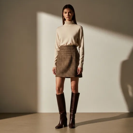 Klasik ekose desenini modern mini kesimle buluşturan Selina Etek, yün karışımlı dokusuyla soğuk havalarda içinizi ısıtırken stilinize sofistike bir dokunuş katar.